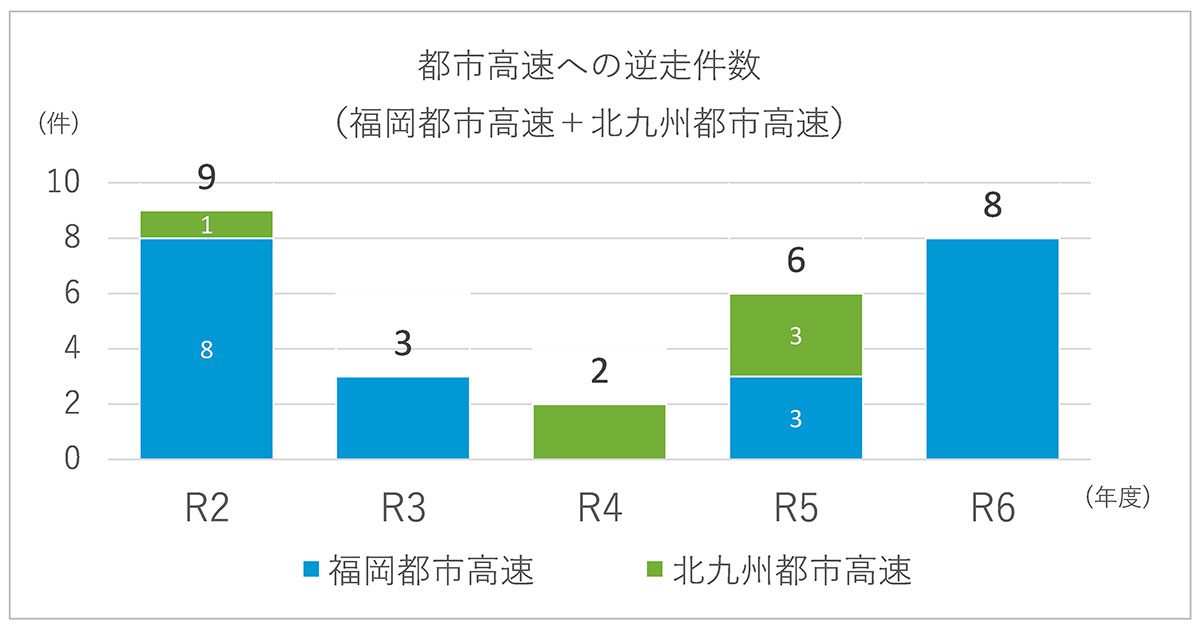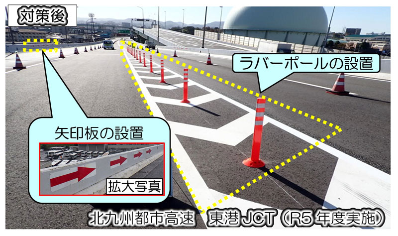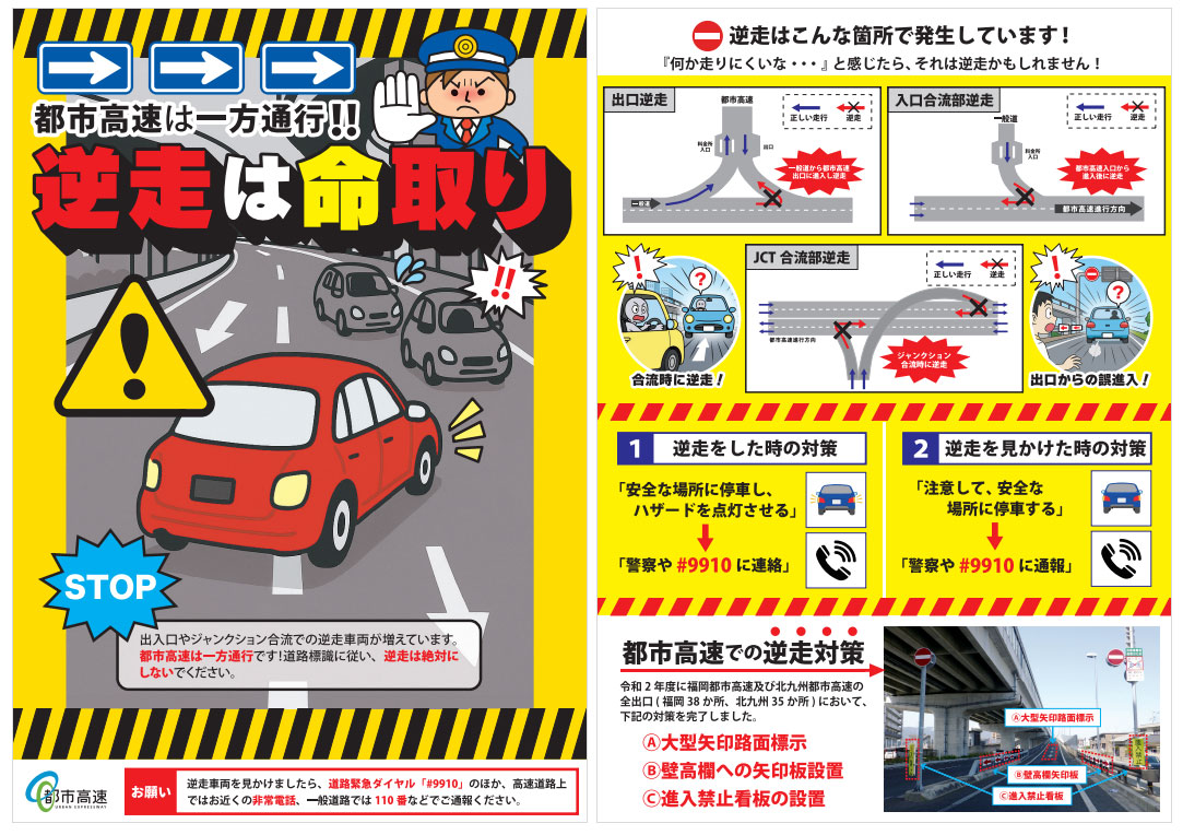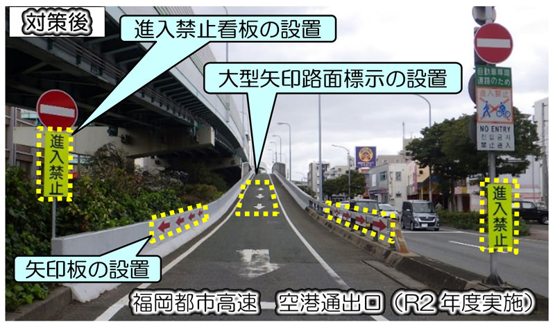 福岡都市高速及び北九州都市高速の全出口・全合流部において逆走対策を実施しています。