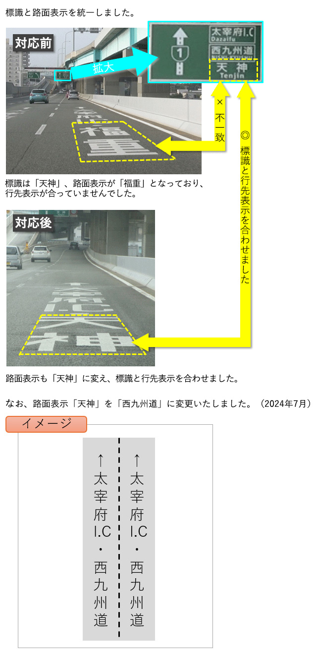 > 貝塚JCT(ジャンクション)手前の標識と路面の行先表示が異なるため、戸惑ってしまう。