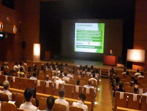 本大会では、北九州高速道路工事等における暴力団等の徹底排除を宣言し、出席者全員で①暴力団を利用しない ②暴力団を恐れない ③暴力団に金を出さない ④暴力団と交際しない の「三ない運動+1」のスローガン唱和を行いました。また、福岡県警察本部から「福岡県内における暴力団情勢と不当要求対応要領等について」の講話があり、暴力団等排除の決意を新たにしました。